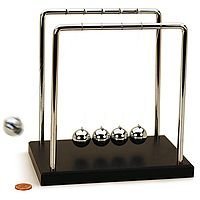 Newton's Cradle is a timeless, classic desktop science "toy" that is the perfect blend of science and art. Lift one steel ball and allow to fall back at one end, the ball at the opposite end will swing out the same distance. Stylish chrome and black color scheme. Fascinating to watch. Also known as "Balance Balls", "Newton's Pendulum" and "Newton's Balls", this executive office toy demonstrates the law of conservation of momentum. Using Newton's third law has never been this much fun! What happens when you swing two? Or three? Newton's Cradle was invented in 1967 by English actor Simon Prebble and named in honor of scientist and mathematician Isaac Newton because it employs Newton's Laws.