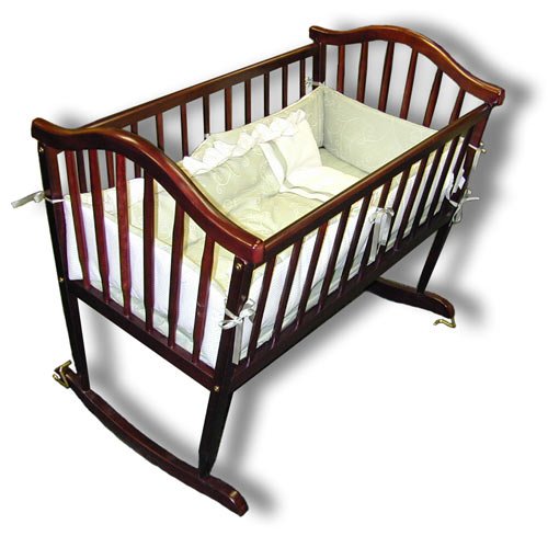 The gentle and comforting rocking motion of this BelAir Rocking Cradle soothes and calms baby to sleep. Beautifully crafted solid hardwood frame. The BelAir Rocking Cradle measures 18" x 36".